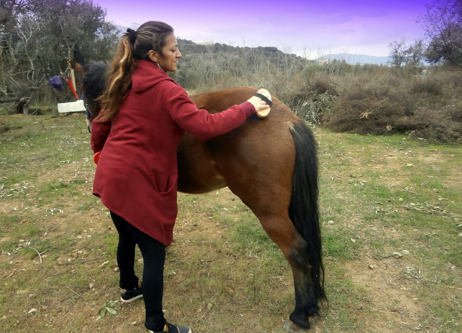 Έτσι, ο Αθανάσιος με τους μαθητές του, εξοικειώνουν τον Ίππο με τα παρελκόμενα της Έφιππης Τοξοβολίας ώστε να τα αποδεχθεί και να μη τα φοβάται.