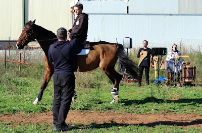 Ο Εκπαιδευτής, συγκρίνοντας τον σημερινό, έφιππο, Δημήτρη με τον Δημήτρη που είχε απολαύσει προ ημερών στον χώρο του όπου έπαιξε ίδια μουσικά κομμάτια με ίδια μουσικά όργανα, σήμερα τον είδε πολύ ...ανετότερο και πολύ ευσταθέστερο με λιγότερη "σκηνική αμηχανία στάσεων"! Επί του Ίππου, ο ίδιος καλλιτέχνης είχε καλύτερη στάση κορμού, άρα και καλύτερες προϋποθέσεις καλής αναπνοής και "φυσήματος" του πνευστού του απ΄ ό,τι στον κλειστό χώρο του. Μία σύγκριση φωτογραφικών θα μπορούσε να σκιαγραφήσει τις διαφορές!
